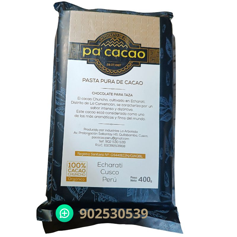 PASTA PURA DE CACAO CHUNCHO DE 400 GRAMOS
